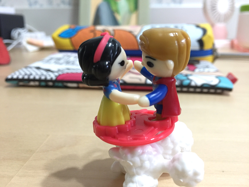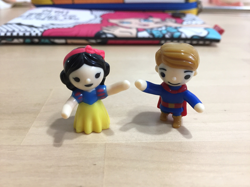 딸아이와 편의점에 가게 되면 한가지를 고르게 하는데 딱히 고를게 없으면 만만하게 집어드는 달걀모양 초콜릿 킨더조이 입니다. 아시다시피 달걀 모양 반쪽은 초콜릿, 나머지 한쪽은 장난감이 들어있지요. 열심히 뜯어 결국은 아빠에게 조립해달라 합니다. 오 그런데 이번에는 제가 봐도 예쁜 모양이 나왔네요. 백설공주와 왕자님 인가요?