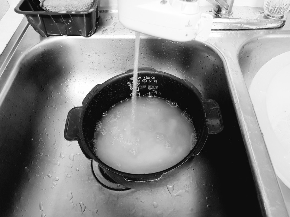 밥을 안치고, 아침식사를 준비하였습니다.