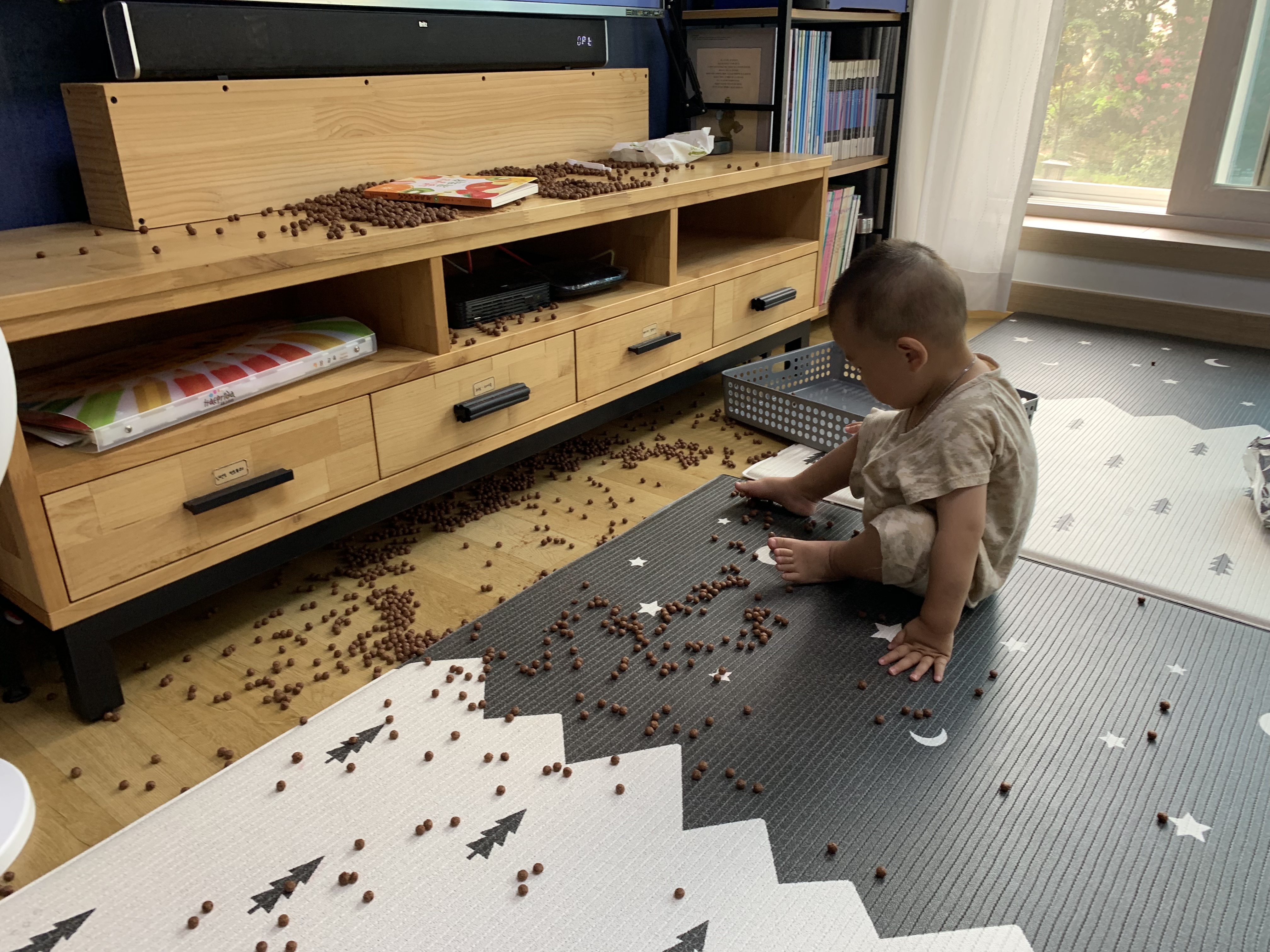 로보의 일상[우리집 사고뭉치]robocity (62)in #kr • 7 years ago 안녕하세요 로보입니다 날씨가 안좋아 집에 있어요 그리고 아이들은 사고를 치고있습니다 어제는 손님 초대 예정이라 청소기에 물걸레에 대청소를 해놨는데 코코볼 대환장파티를 열어주신 찬우님 일회용 수세미로 리본놀이 하시는 찬우님 얌전히 놀자~ #baby #family #lifeisgoood #life