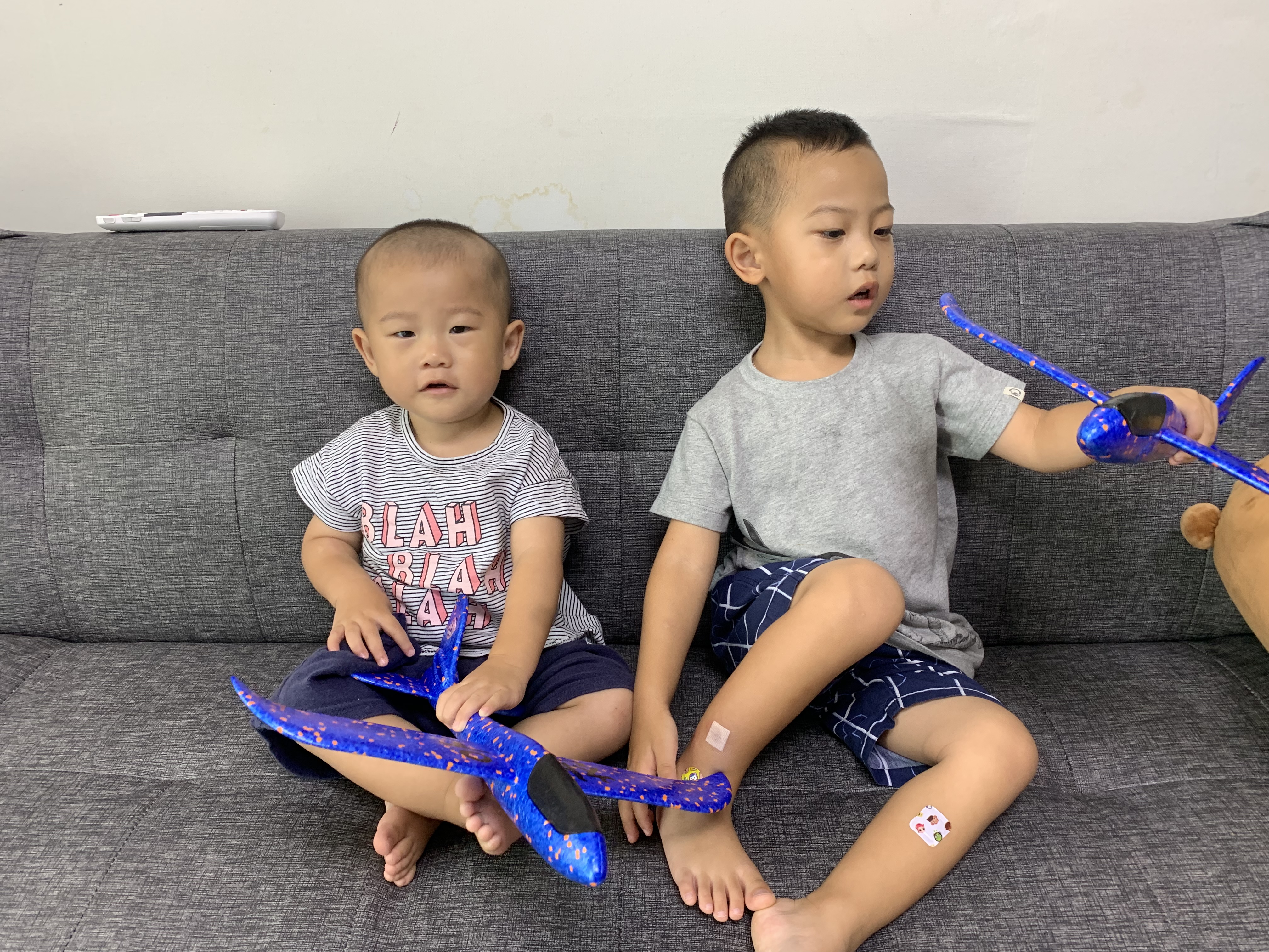 둘이서 비행기 장난감 가지고 싸우길래