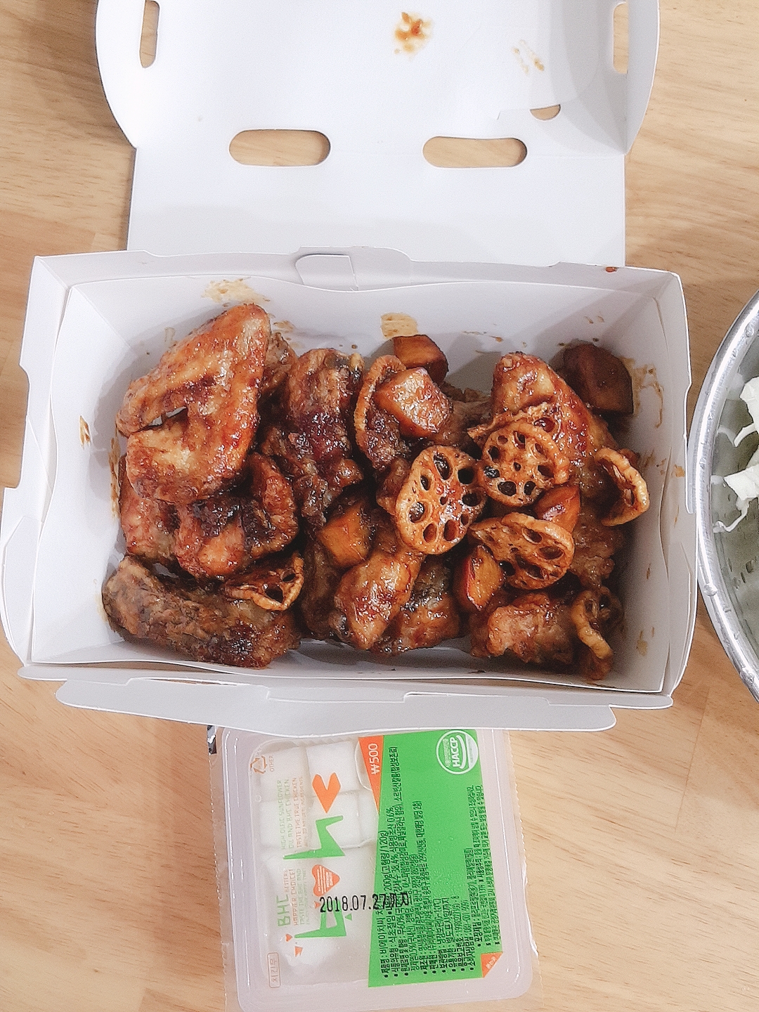 치킨 중간중간에 연근이 보이네요 ㅎㅎ