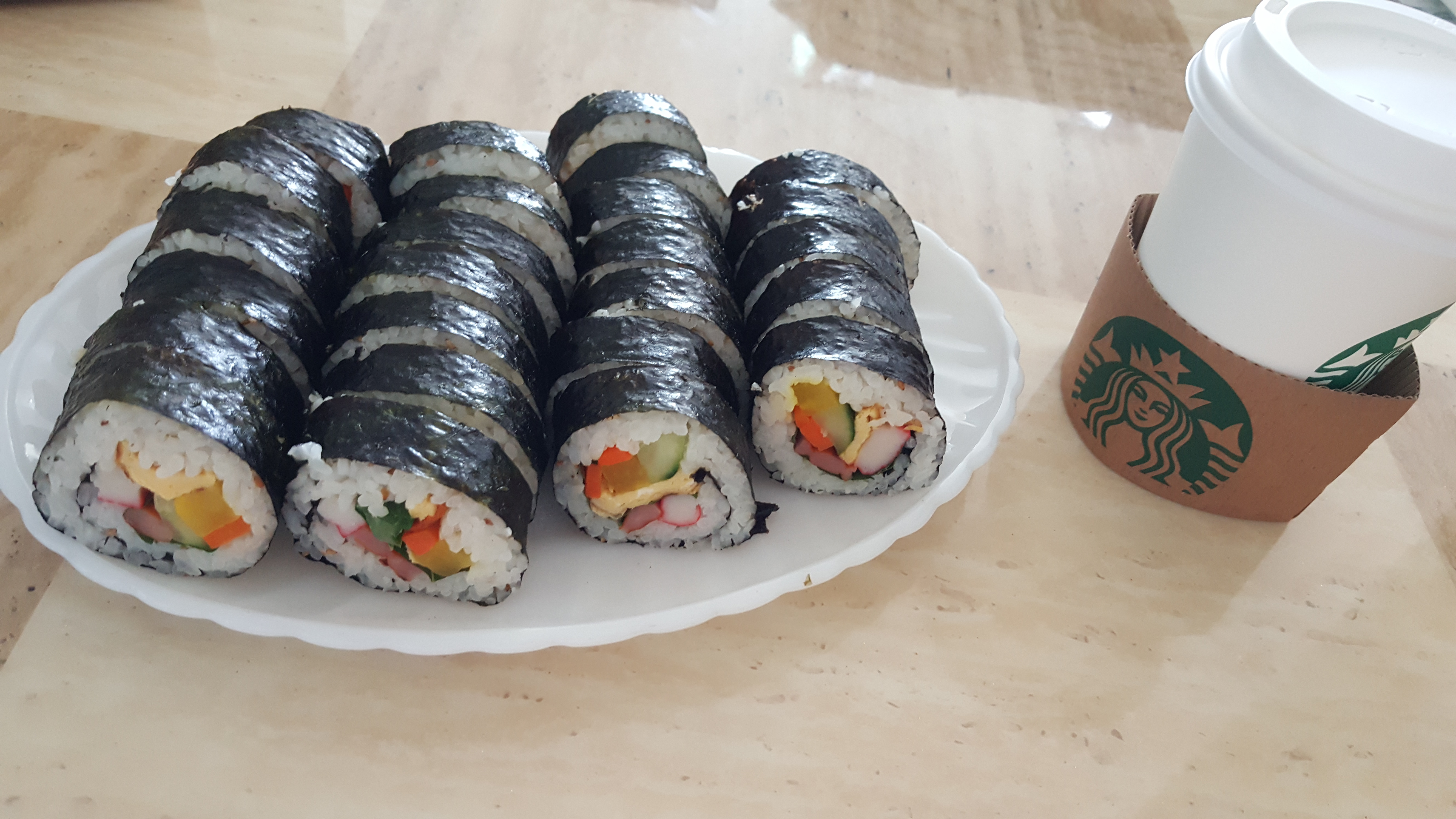 친정에 오니 김밥을 싸주십니다. 엄마표 음식으로 저녁 해결했어요^^