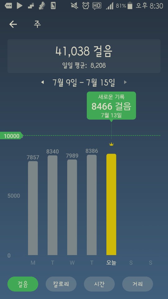 매일 운동하는데 오늘 걸음수 신기록 세웠네요