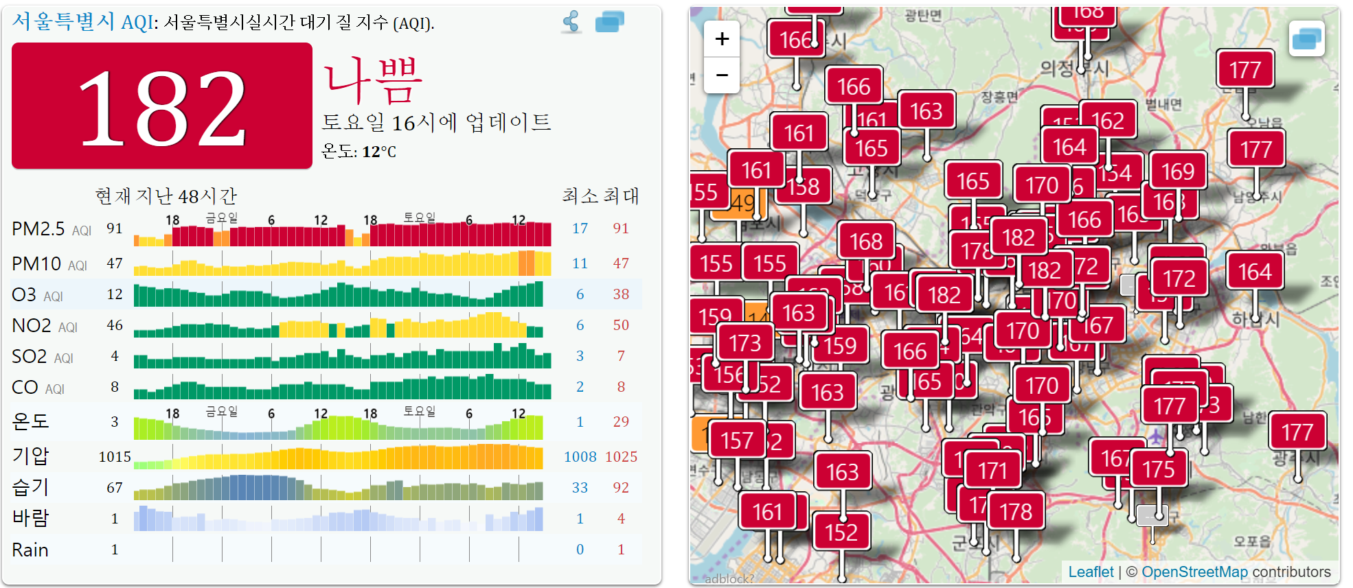 AQICN 사이트에서는 이번 주말 내내 공기가 좋지 않을 거라고 하네요.