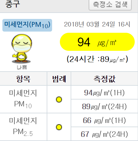 여기는 충청도 산간지방인데도, 미세먼지가 계속해서 아주 나쁨으로 나온답니다. 한번씩 기침이 심하게 나올 때가 있을 정도에요.