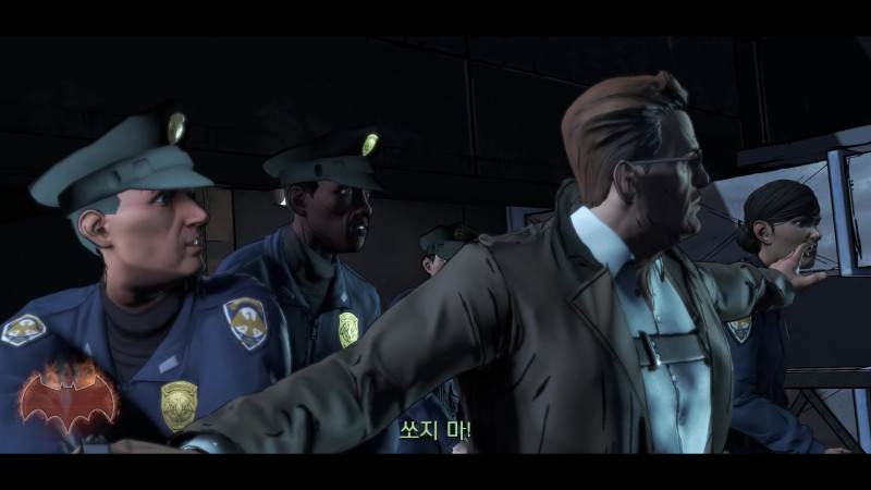 배트맨 잡아 승진하고 싶은지 한명이 이 타이밍에 배트맨을 쏴버리고 만다. 무슨 못말리는 어린 아이 달래는 것 마냥 그르치는 서장님.
