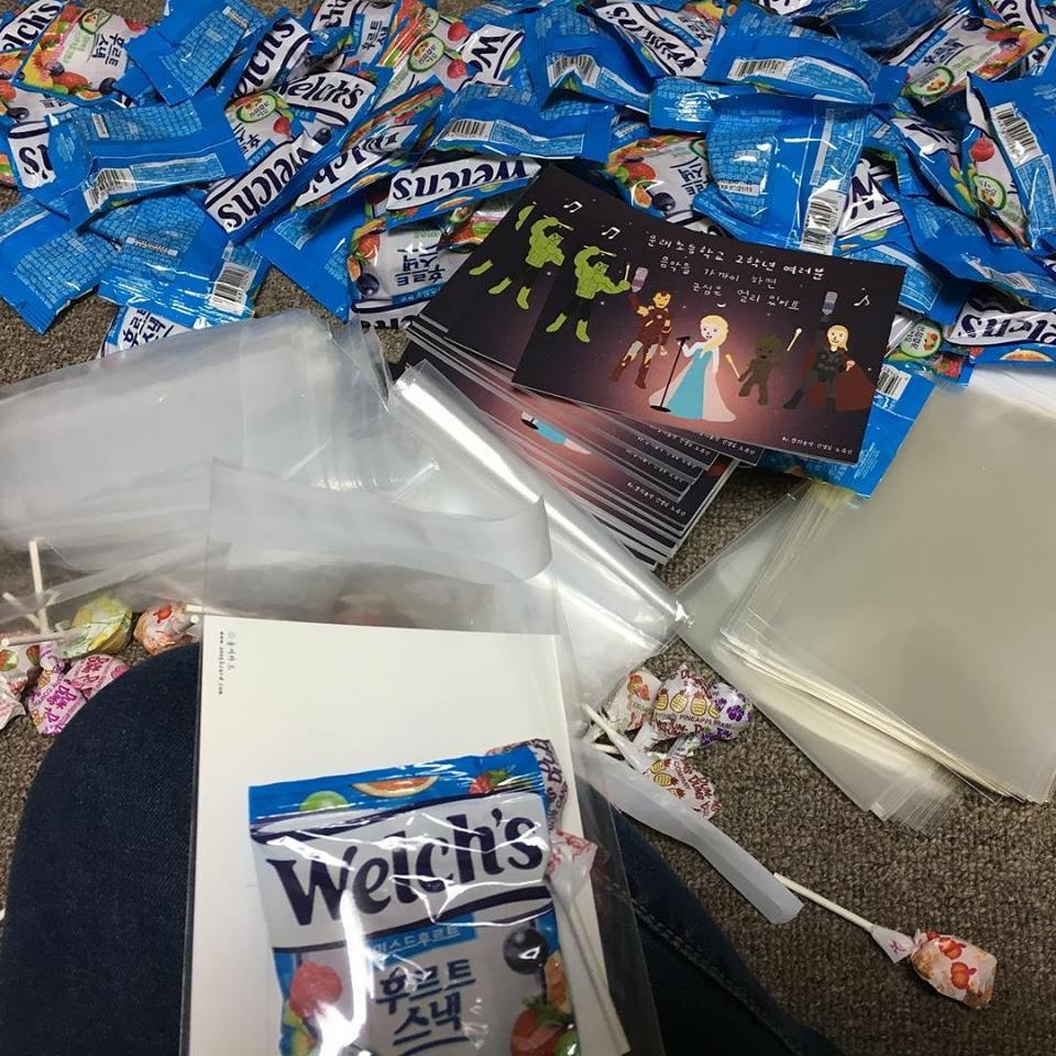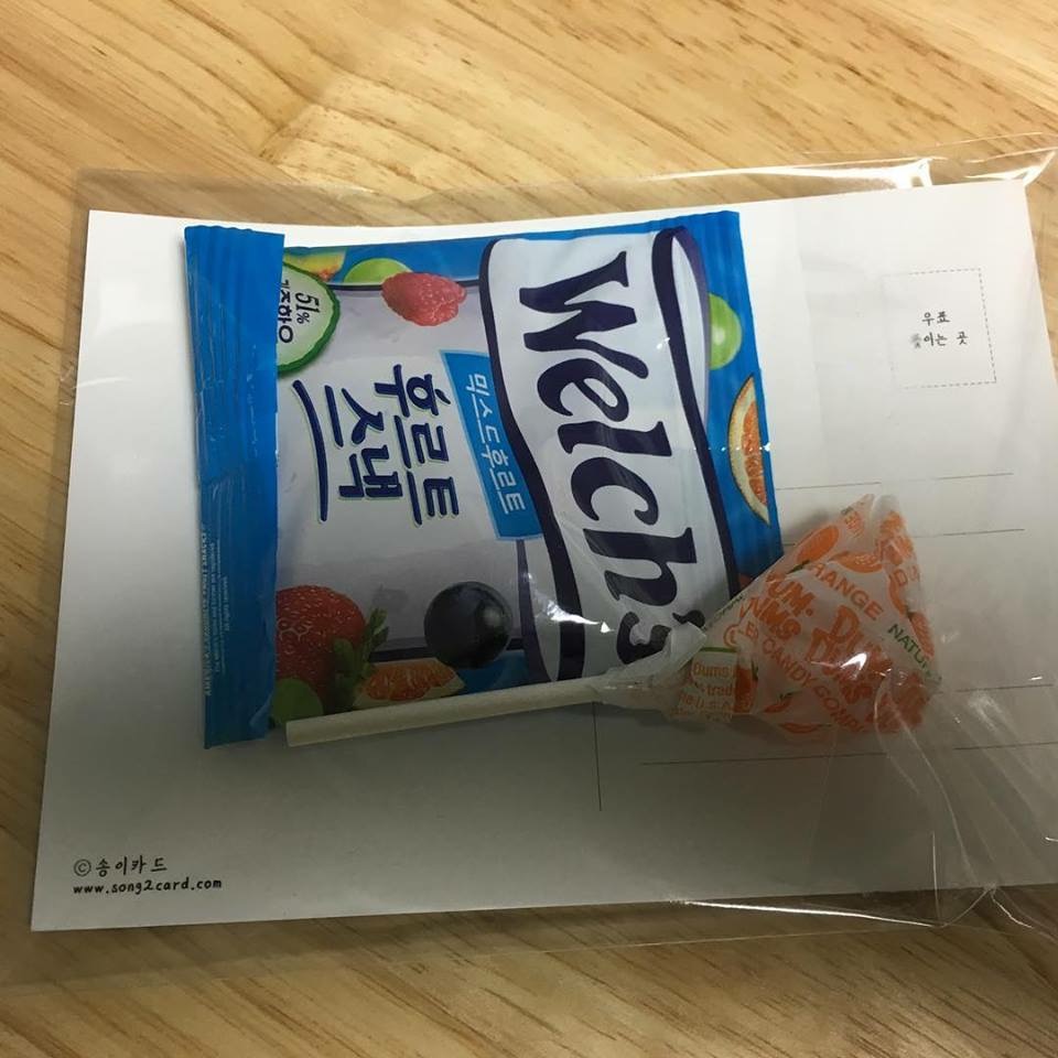 나눠주면서 느끼지만 엽서보다는 아이들은 젤리와 사탕색에 더 관심을 보입니다.