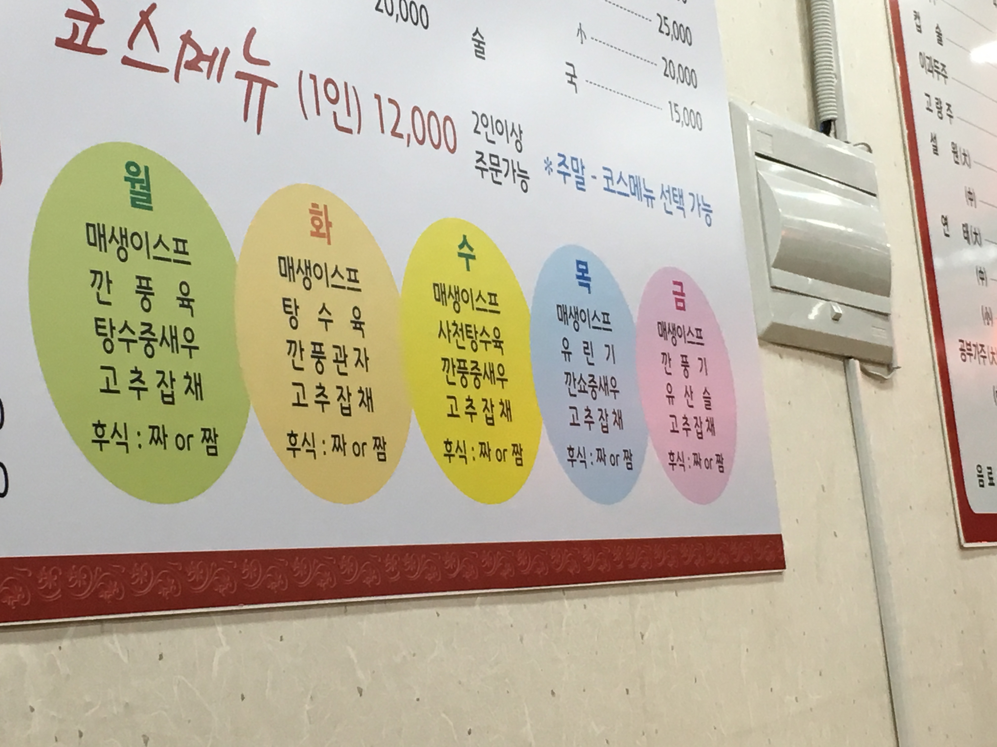 코스가 12000원이니 한달에 네번도 먹을 수 있었습니다. ㅋㅋㅋㅋㅋ