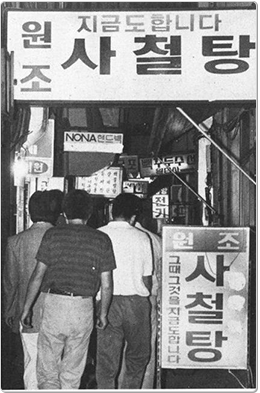 88 올림픽 때문에 된서리를 맞은 이들이 있다면 단연 보신탕집 주인을 비롯한 ‘혐오식품’ 종사자들일 것이다. “개고기 먹는 한국인들”의 오명(?)과 복날만 되면 미어터지는 보신탕집의 ‘한국적 정서’ 사이에서 고심하던 정부는 마침내 1984년 보신탕, 뱀탕, 토룡탕, 굼벵이탕, 개소주 등을 ‘혐오식품’으로 규정하고 이를 도심에서 판매하는 행위를 단속하기로 한다. 보신탕집들은 그 간판을 내리고 골목으로 숨어들거나 판매가 허용된 ‘면단위’ 지역으로 옮겨가야 했다. 개고기를 즐기던 이들 또한 간첩 접선하듯이 단골집을 찾아야 했다. 사대문 안에 보신탕 간판을 내거는 일이 불가능했던 바, 종로의 한 보신탕집에서는 그저 “계속합니다.”라는 간판으로 자신들의 건재를 알려 손님들을 맞았다는 전설 같은 얘기가 전한다.