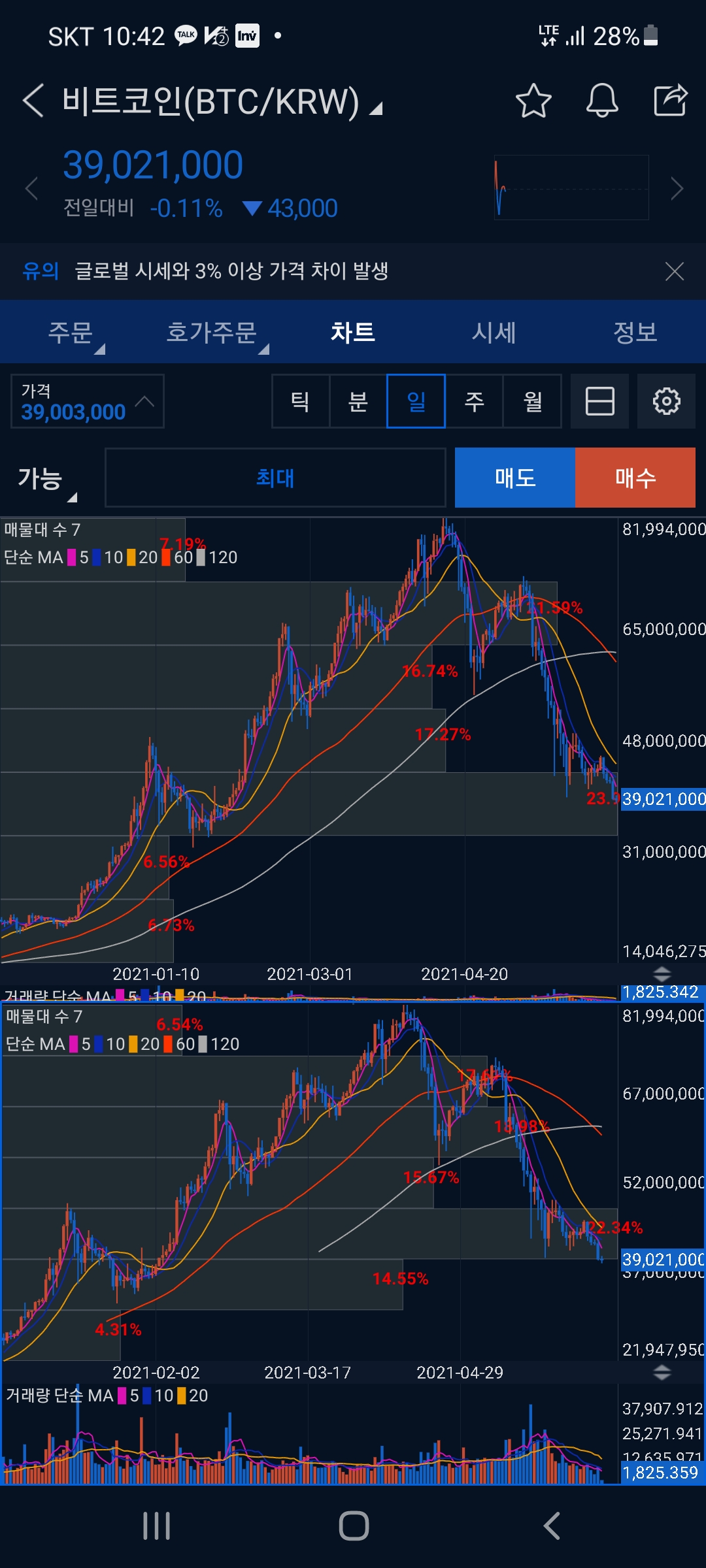 비트코인 4천만원 무너지다scottbrian (52)in #kr • 5 years ago 결국 비트코인 4천만원도 깨졌다. 세계적인 흐름과 차트상 당분간 하락장세는 피하지 못할것으로 보여진다. 내년부턴 이익 발생분에 세금도 추징한다고 하니 악재의 연속이다. 비트코인 흐름이 이렇게 흘러간다면 스팀과 스달도 안전하진 못할것같다. 우리가 부자되는 꼴을 못보는 기득권들. 소나기가 아니라 장마비고 태풍일것 같은 찝찝한 기분. 이웃님들 우리 잘 대응하며 보텨봅시다. #krsuccess #dblog #aaa #life #money #bitcoin #zzan