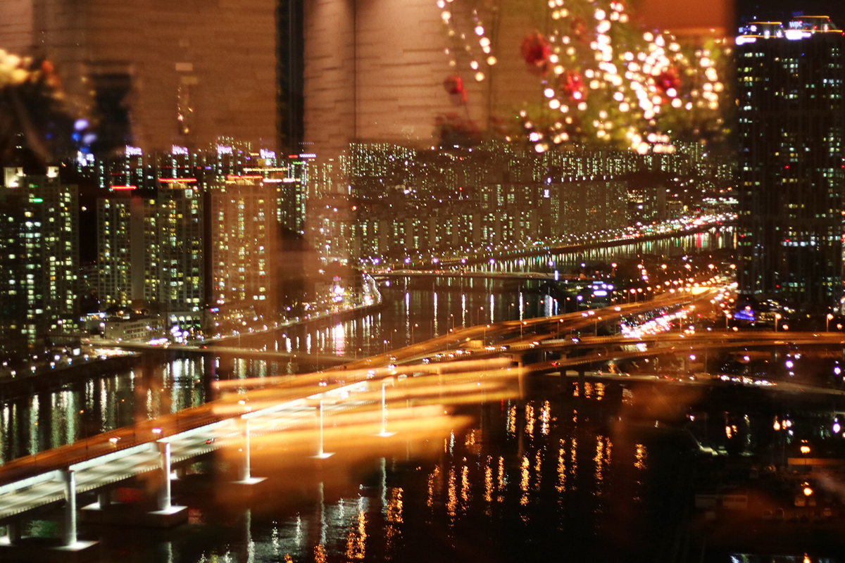 수영강변으로 바라보았을때 창가에 조명들이 비춰짐에도 강변을 따라 늘어진 차선들이 마치 크리스마스 트리와 같았답니다. 그동안 부산의 야경은 즐길만큼 즐겼다 생각했었는데, 파크 하얏트 부산에서 즐기는 부산의 야경은 그동안의 생각들을 무색하게 만들더라구요.
