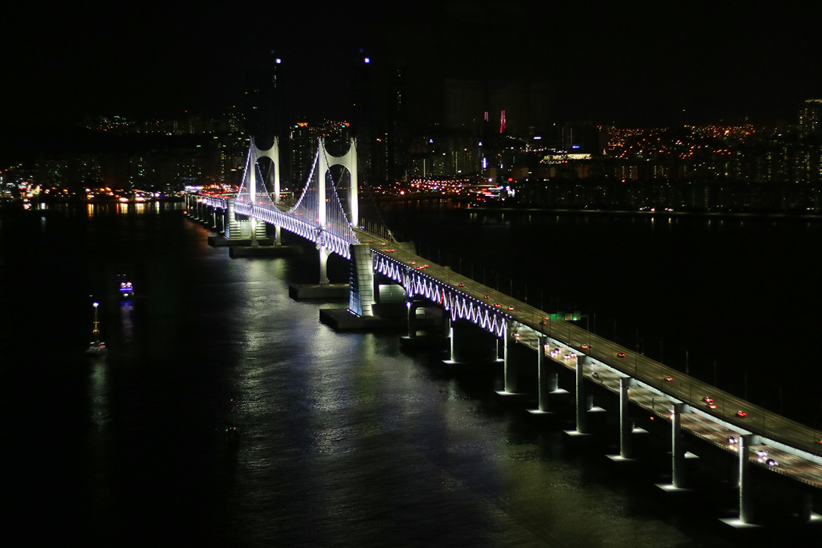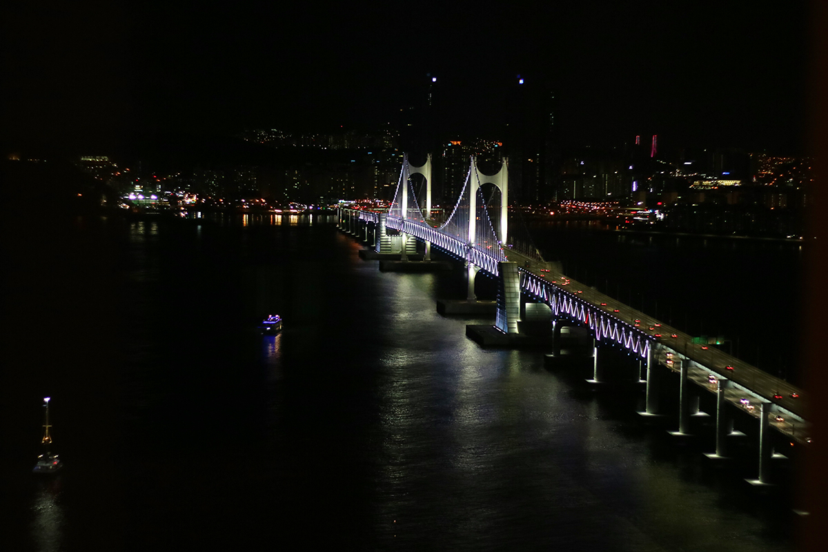 길게 이어진 광안대교를 따라, 해변을따라 늘어진 건물들 불빛들이 너무나도 아름다운 모습이라 이곳이 부산인지, 다른 나라인지 헷갈리게 되더라구요. 얼마전 타이베이에서 야경을 즐긴 저에게는 너무나도 이곳이 더욱 아름다워보였습니다.