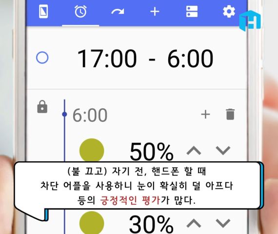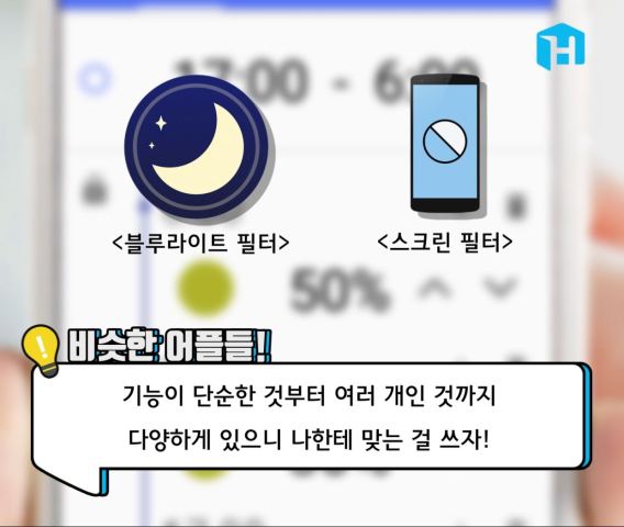 (‘블루라이트 차단 스크린 필터’ 어플은 구글 플레이스토어에서 설치할 수 있습니다!)