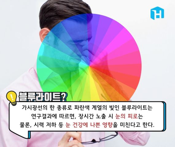 우리 눈이 블루라이트에 장시간 노출되면 눈의 피로는 물론, 시력 저하 등 눈 건강에 나쁜 영향을 미친다고 해요.
