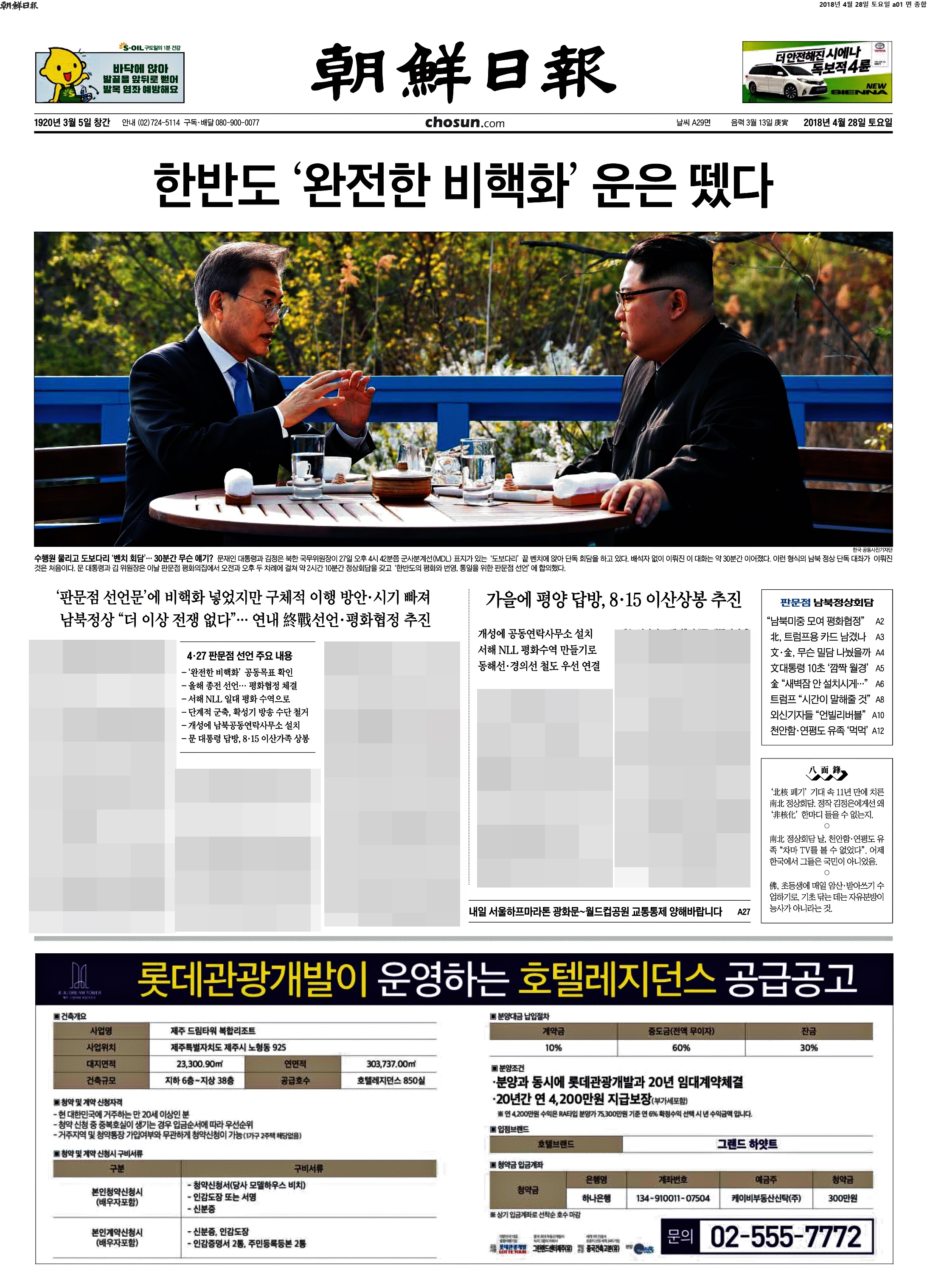 [척]남북정상회담 1면 다시보기 下 : 4월 28일자