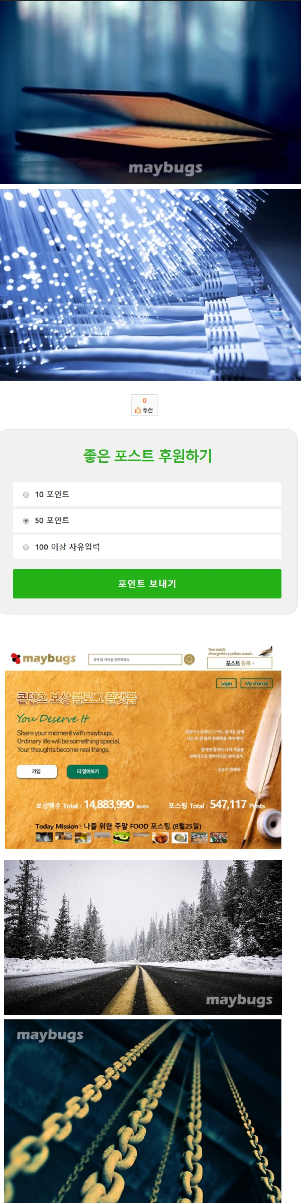 특정 포스트에는 한번만 후원할 수 있습니다. (어뷰징이 발견 되는 경우에는 포인트 전액 차감입니다.)어뷰징 제재 관련