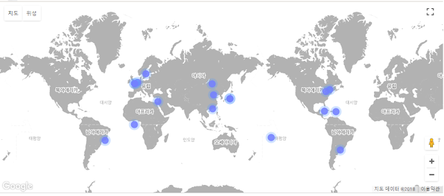 위 그림에서 한국에는 마크가 없다는 게 아쉽습니다. 생각보다 아시아에 많이 분포되어 있네요.