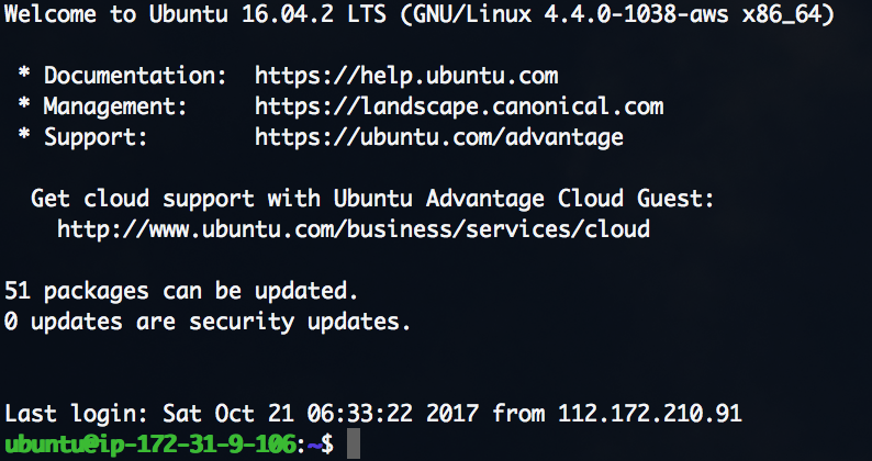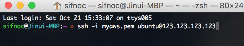 ssh -i [Key pair filename] ubuntu@[Public DNS]