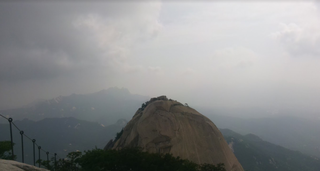 미세먼지 보통 수준으로 도봉산 오봉과 자운봉이 흐릿하게 보임