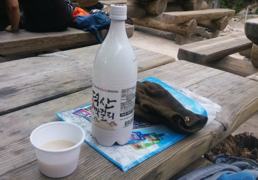덕산막걸리 1.2l, 양이 많아서 백운대에서 1/3, 백운산장에서 김밥이랑 2/3