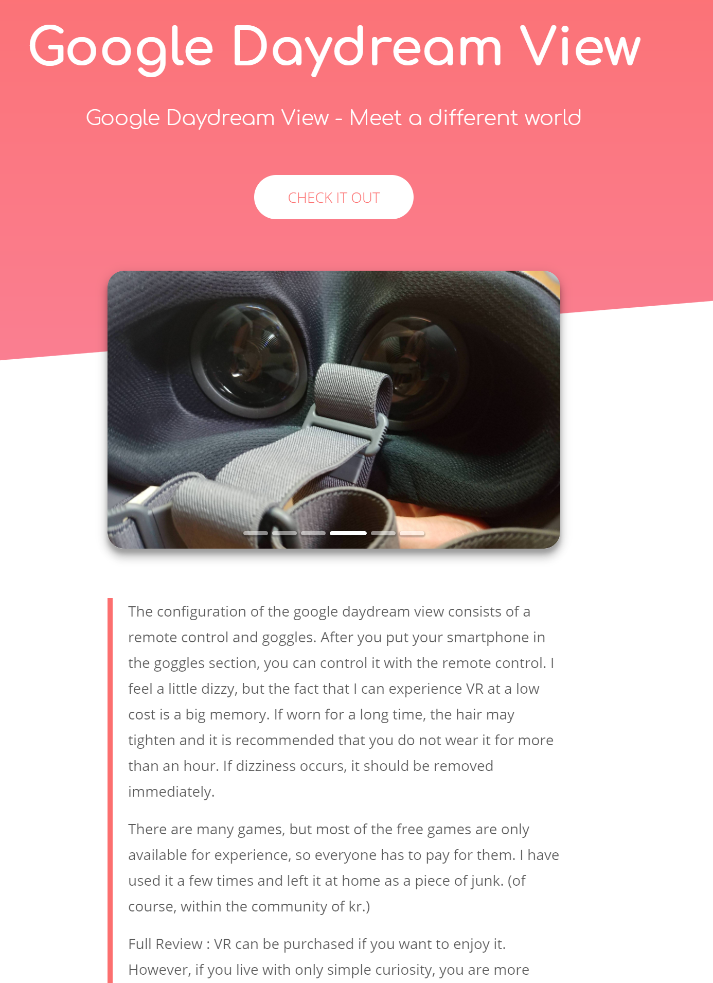 요런 것들 한 서너 장 찍었습니다. 제품은 구글 데이드림 뷰입니다.