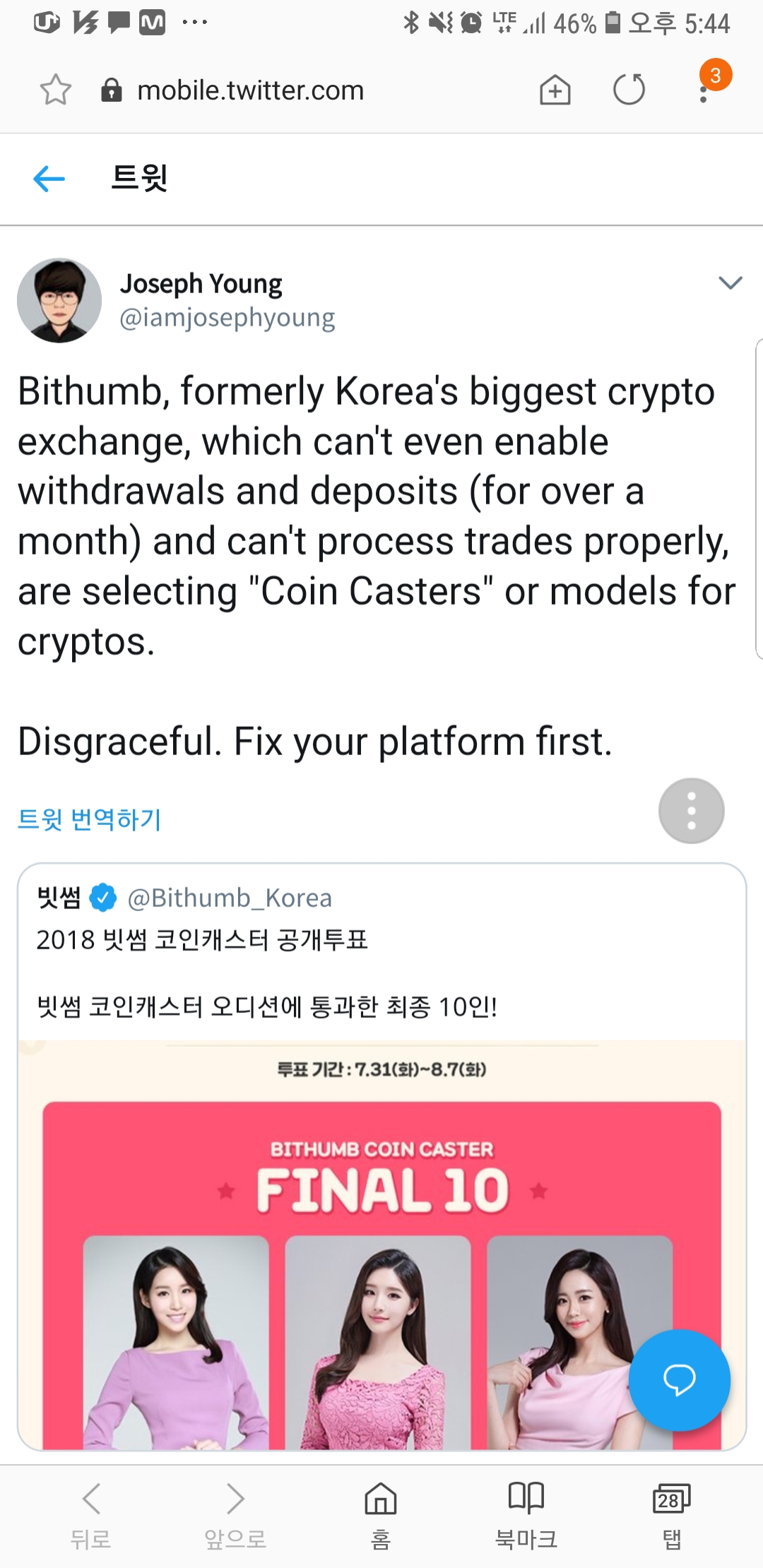 2 . 조셉영의 빗썸 비판!