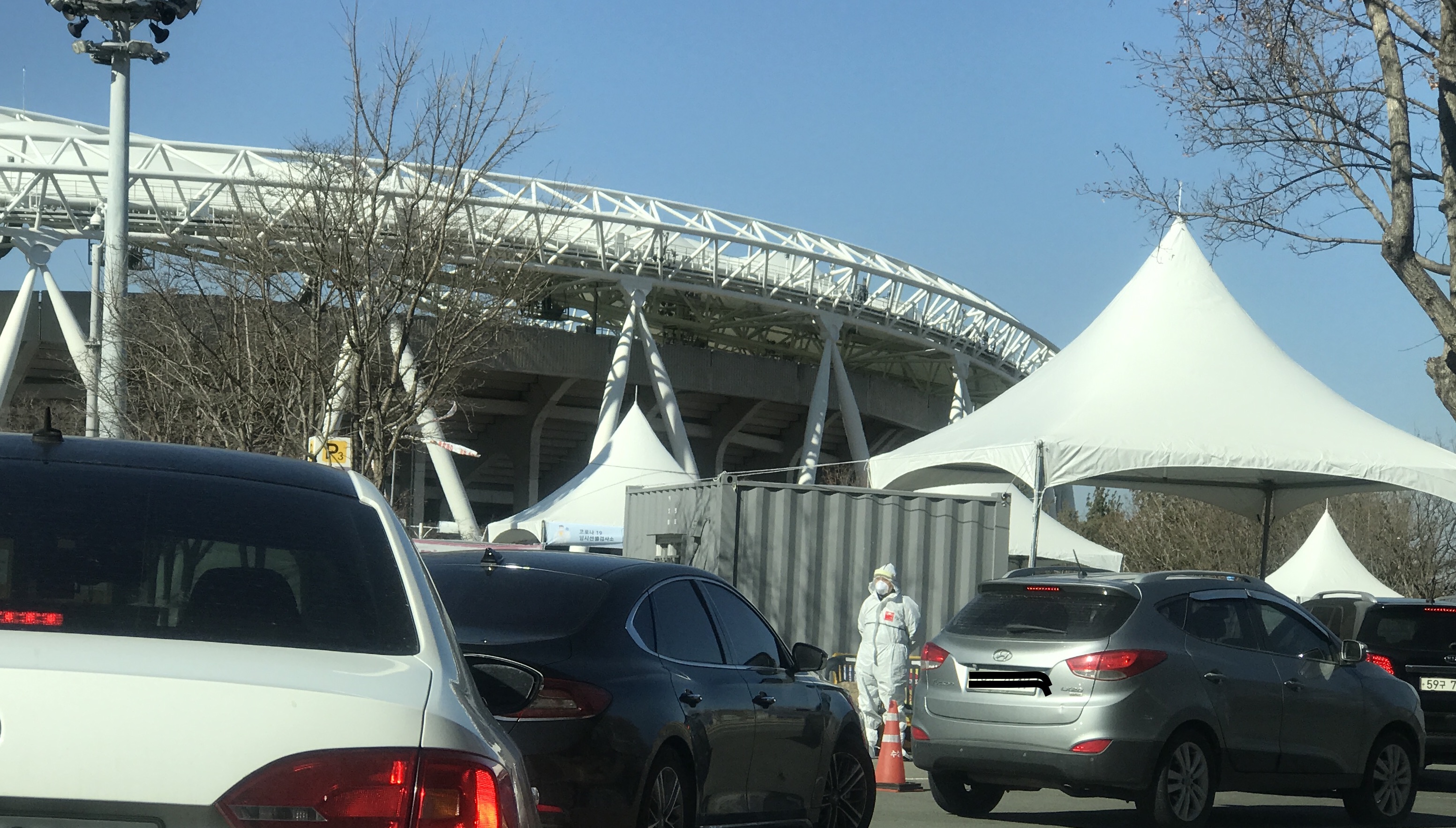 몇 일 째 미열이 계속있고 무력감과 두통이 계속되었다. 선별검사소에 전화했더니 코로나가 아닐 확률이 높고 확진자 동선에 겹치지 않는다면 임시선별검사소를 추천한다고 했다. 다른 식구는 증상이 없지만 가족들 중에 한 사람은 대표로 검사를 받는 것이 좋겠다는 생각이 들었다. 근처 임시선별검사소가 없어서 월드컵경기장에 있는 검사소로 향했다. 차량들이 길게 줄을 서 있었다. 오랜만에 햇살을 맞으니 좋았지만 날씨는 따가울 정도로 차가운 바람이 불고 있었다.