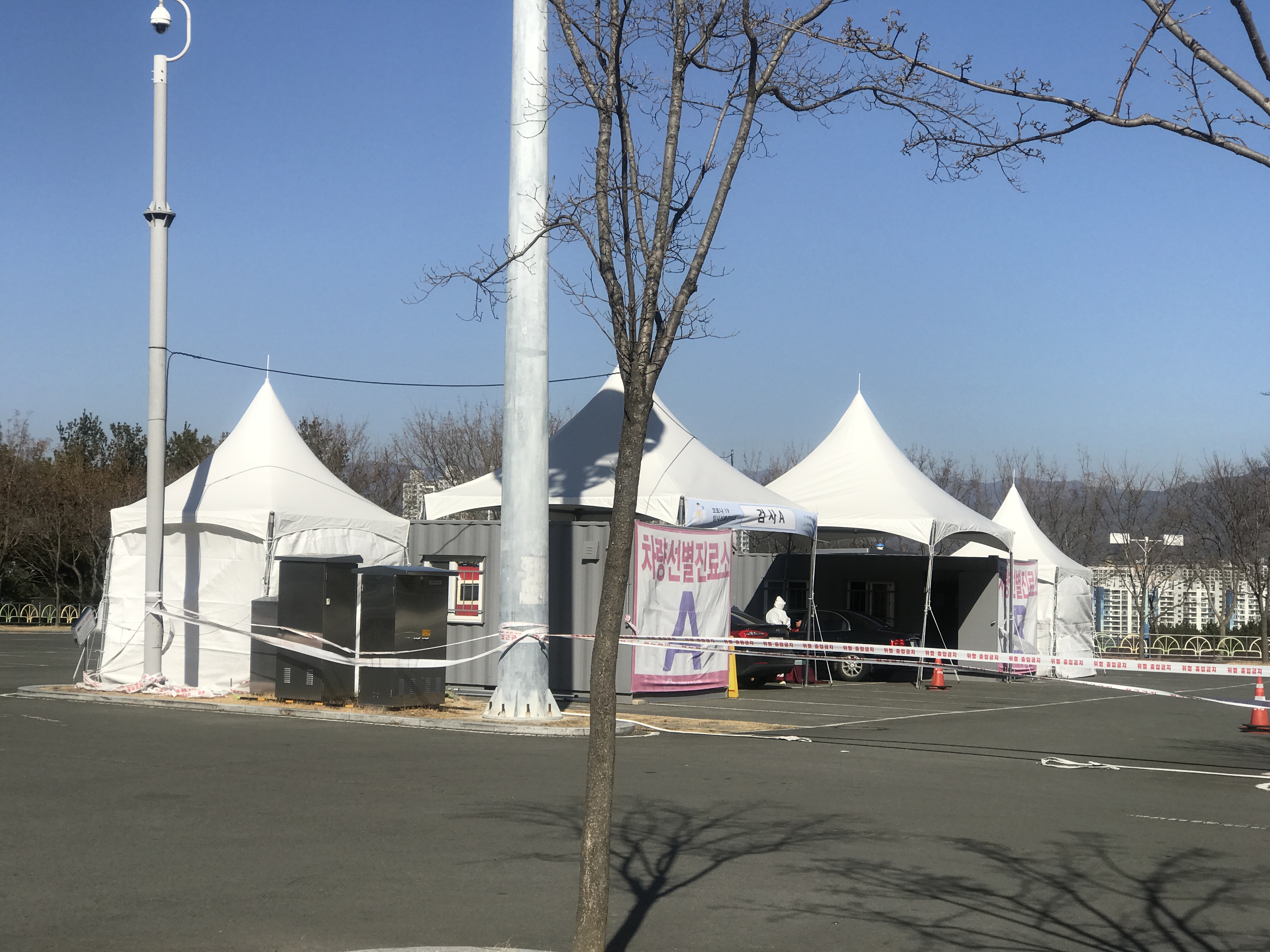 차가운 날씨에 매서운 바람에 검사소 직원들이 너무 힘들어 보였다. 난로가 있지만 가까이 가도 온기는 전혀 느낄 수가 없었다. 하루종일 밖에서 저렇게 견디는 것 보니괜히 왔나 싶을 정도로 마음이 짠하고 안타까웠다.