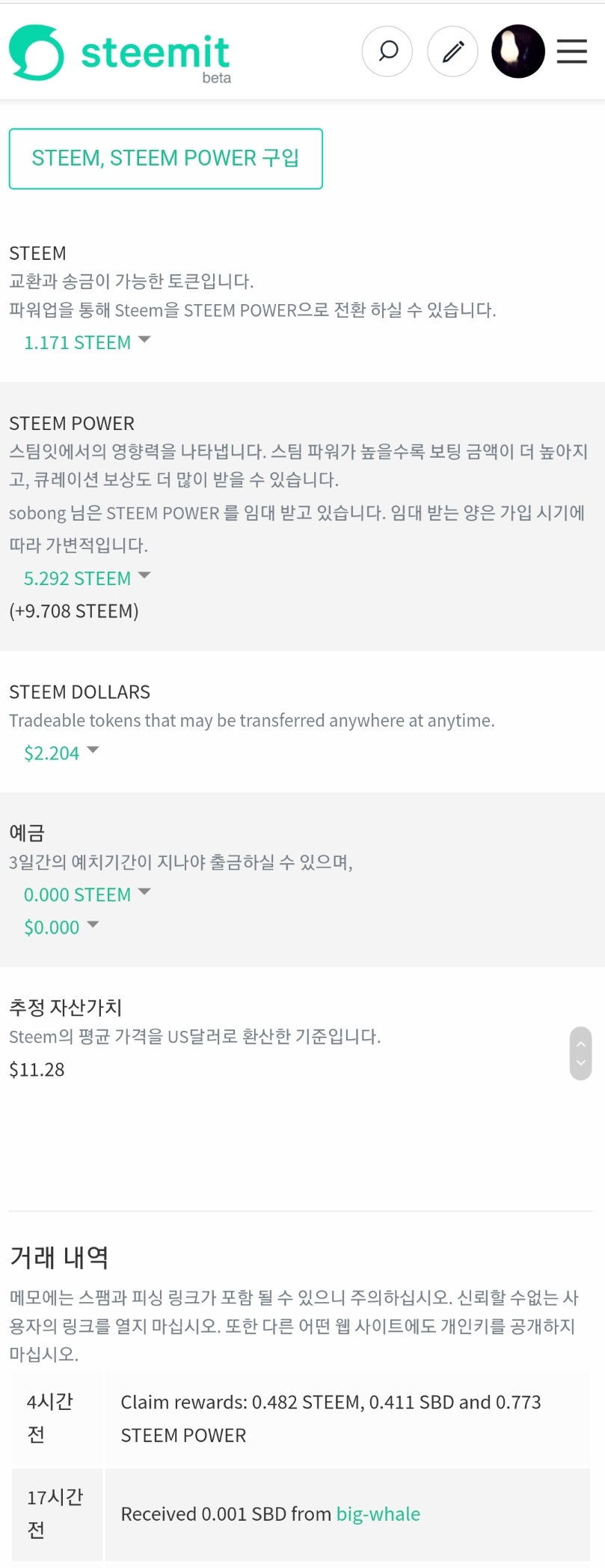 3. 어느날 지갑을 열어보니 놀랍게도 숫자가 찍히기 시작한다. 나는 가입후 바로 스팀파워 임대를 받은 채무자 모드였는데(언제 어떻게 임대받은건지는 모름;;) 개미 코딱지만큼이 속도로 숫자가 늘어나는 것으로 보아 언젠가는 채무를 갚고 더 큰 채무를 갖게 되겠지. 스팀달러 스팀 스팀업 스팀파워 ... 글들을 봐도 아직 뭐가 뭔지 정확한 개념이 잡히질 않는다. 빅고래(big-whale)는 왜 자꾸 애매한 금액의 돈을 지갑으로 보내주는걸까. 분명한건 이 세계 역시 숫자가 많으면 많을수록 적응에 유리하다는 것 정도를 이해하는중. 일단 스팀을 좀 사야겠다.