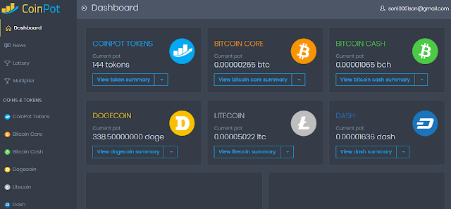 위 사이트들에서 받은 코인은 "코인팟 : https://coinpot.co/" 이라는 사이트에 자동으로 모이게 되어 있다.