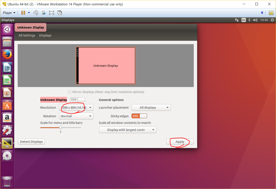 Resolution을 원하는 해상도로 설정하시고 Apply 버튼을 누릅니다.