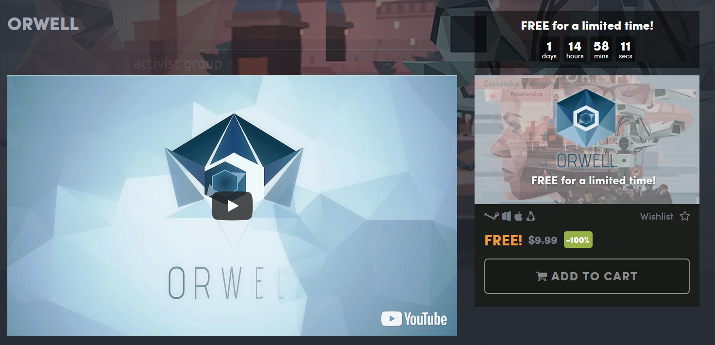 "Orwell" 이라는 빅브라더 시뮬레이터가 험블 번들에서 무료 배포된다고 하네요.
