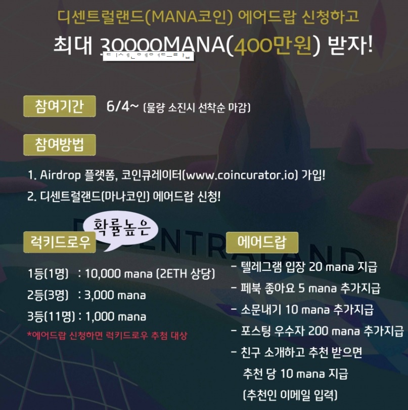 : 블로그, 스팀잇 등..."디센트럴랜드, MANA" 단어가 반드시, 포함 되어야 합니다.