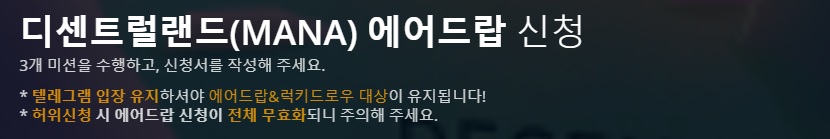★☆에어드랍 참여 전 준비사항 : 업비트 거래소 "MANA" 입금 주소를 미리 알아두세요~~~
