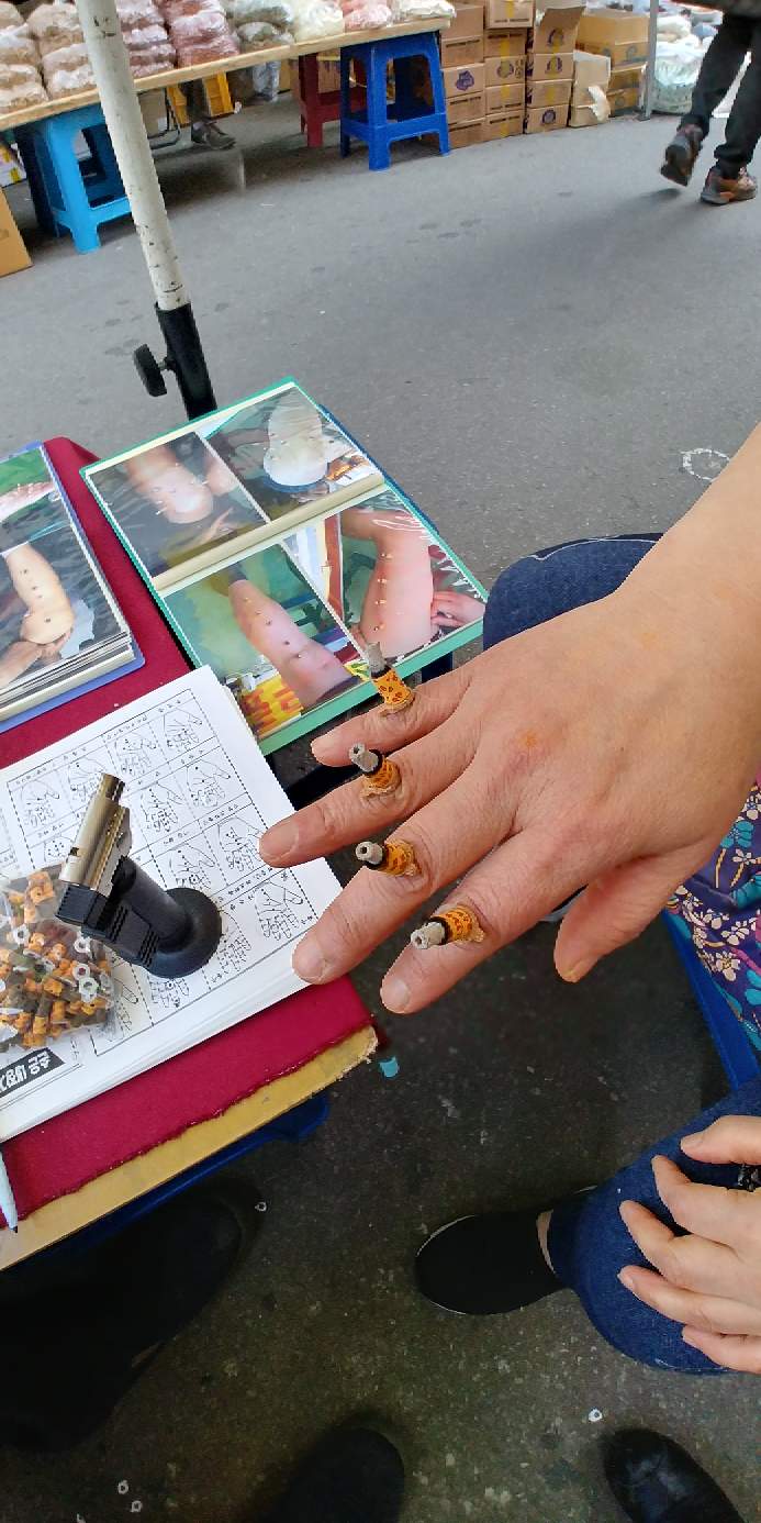 한국에 오거든 매 4일과 9일에 열리는 대전 유성 5일 장에 바람도 쐴 겸해서 가 보세요. 공짜로 뜸을 떠 줘요. 마음에 들면 사고요.