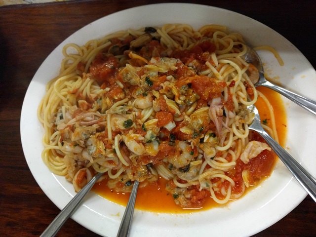 The seafood spaghetti by Pellegrini's Bar