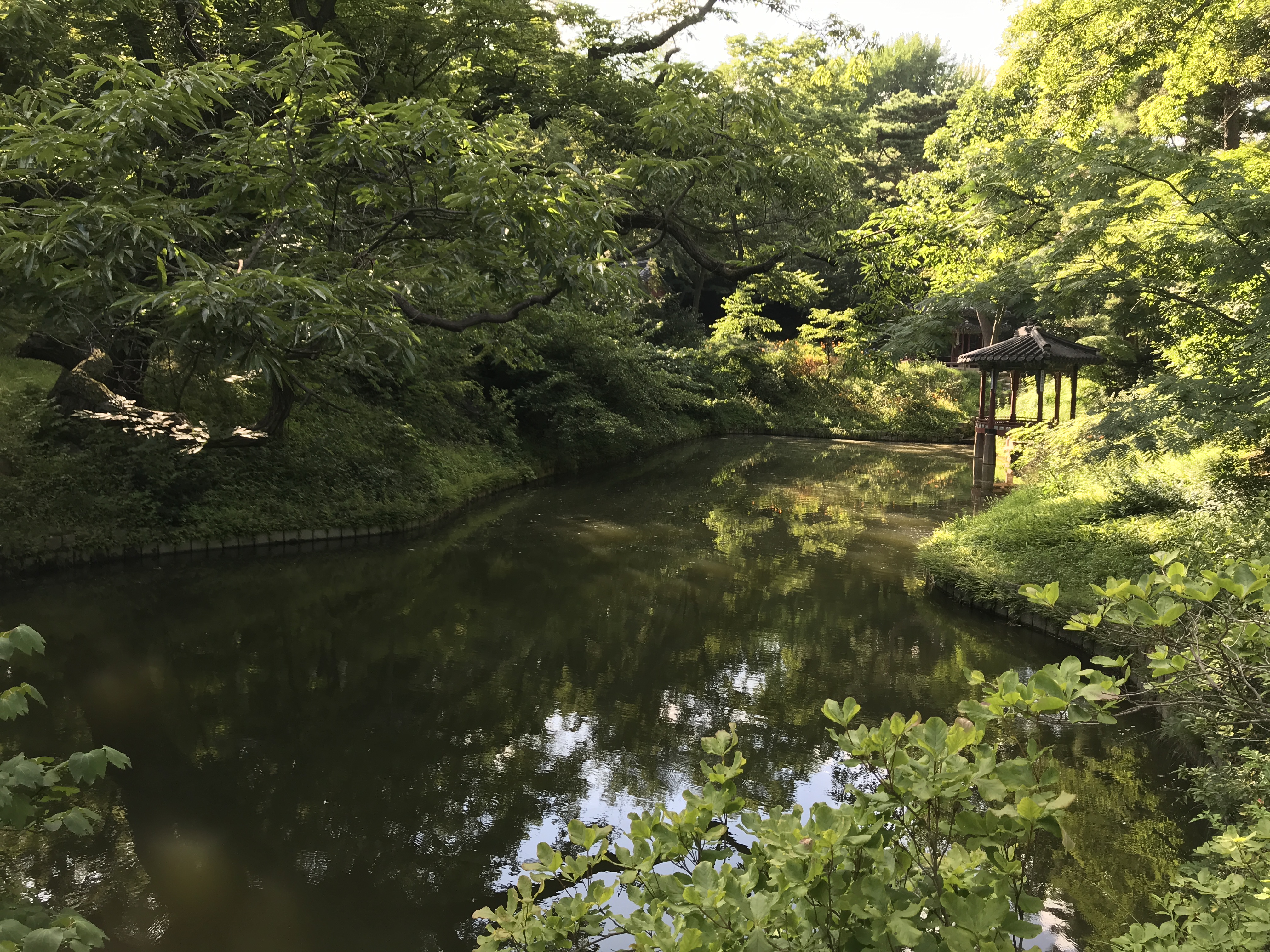 존덕정 인근의 연못은 다른 곳과 달리 외곽이 곡선으로 되어 있습니다.