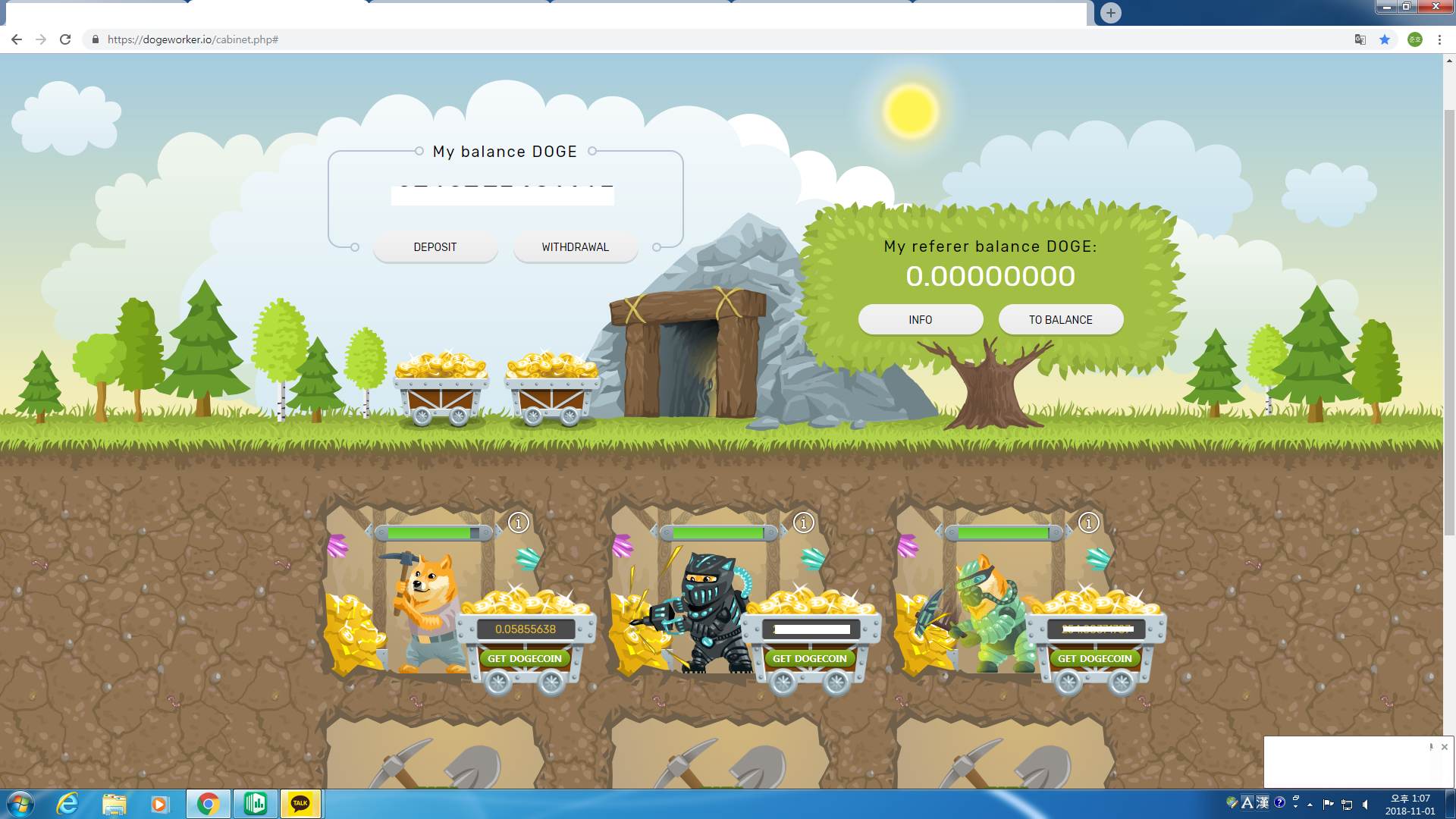 팁을 드리자면 기본으로 주는 멍멍이가 캐는 도지는 실제로 출금이 가능합니다. 눈을 속이기 위해서 출금을 해주더군요.