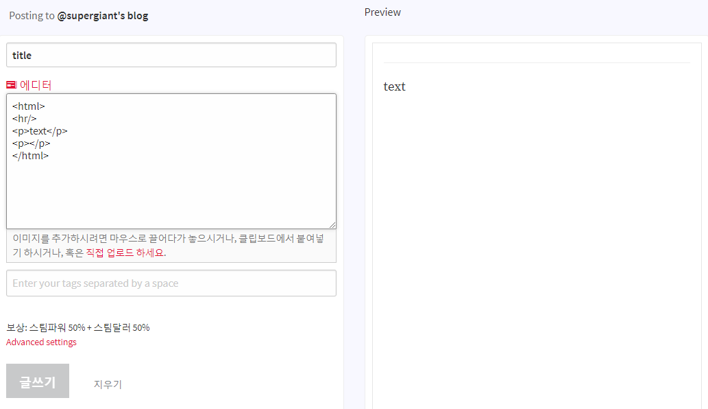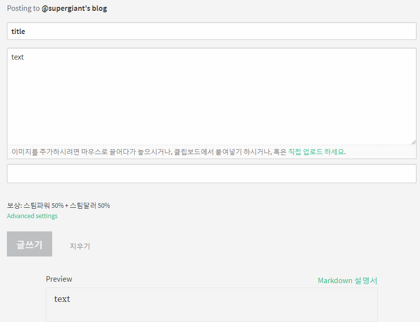 스팀잇 글 입력 부분 - 몇년째 변화가 없네요