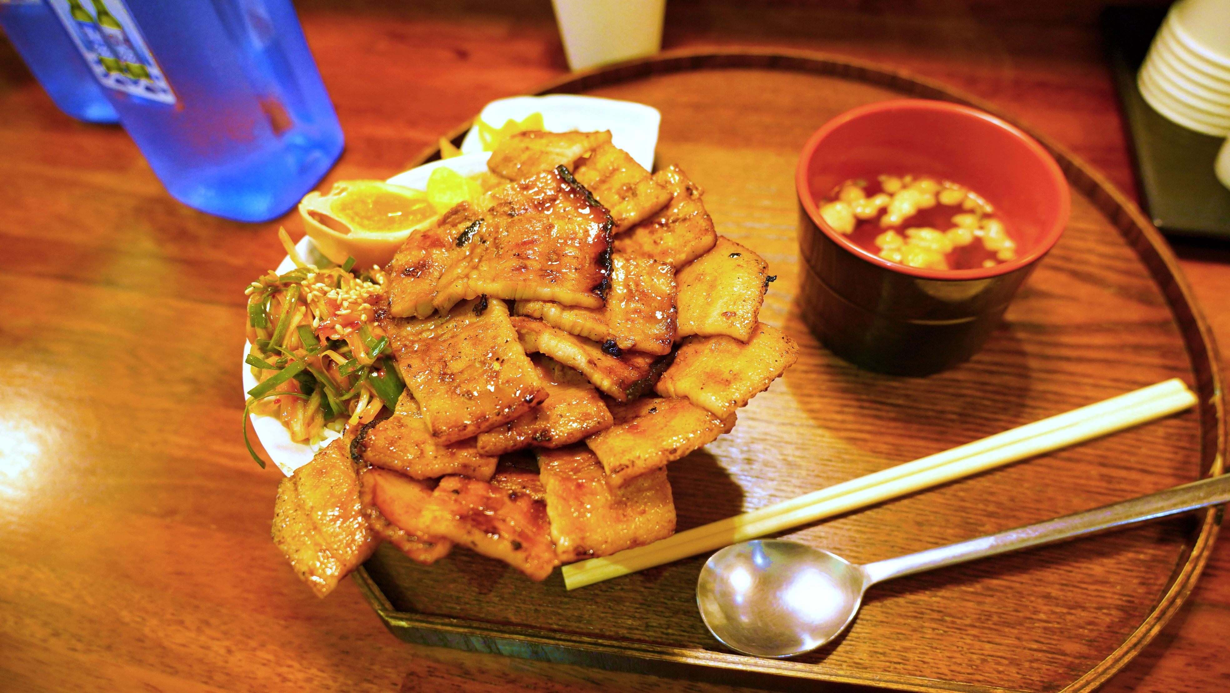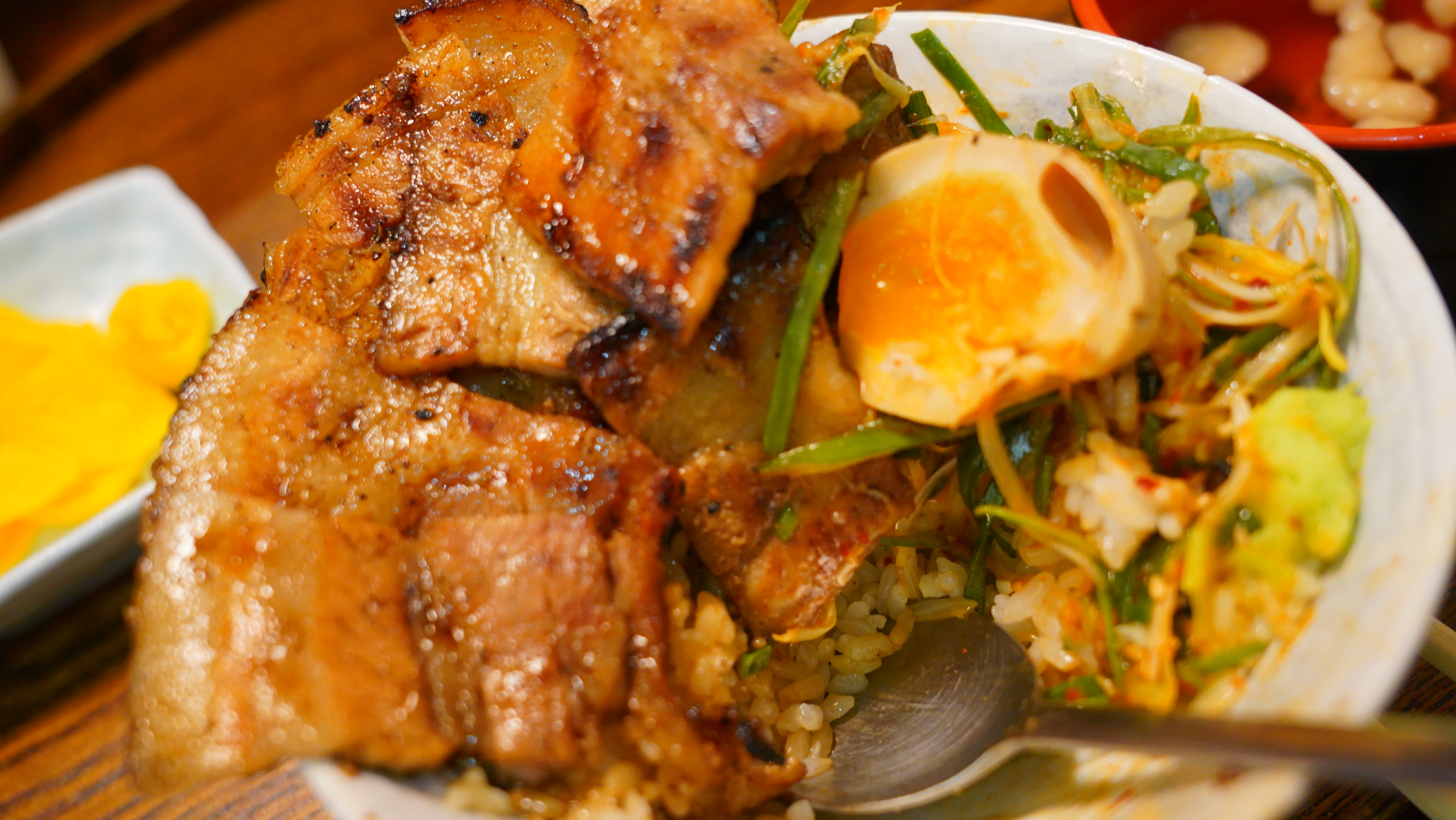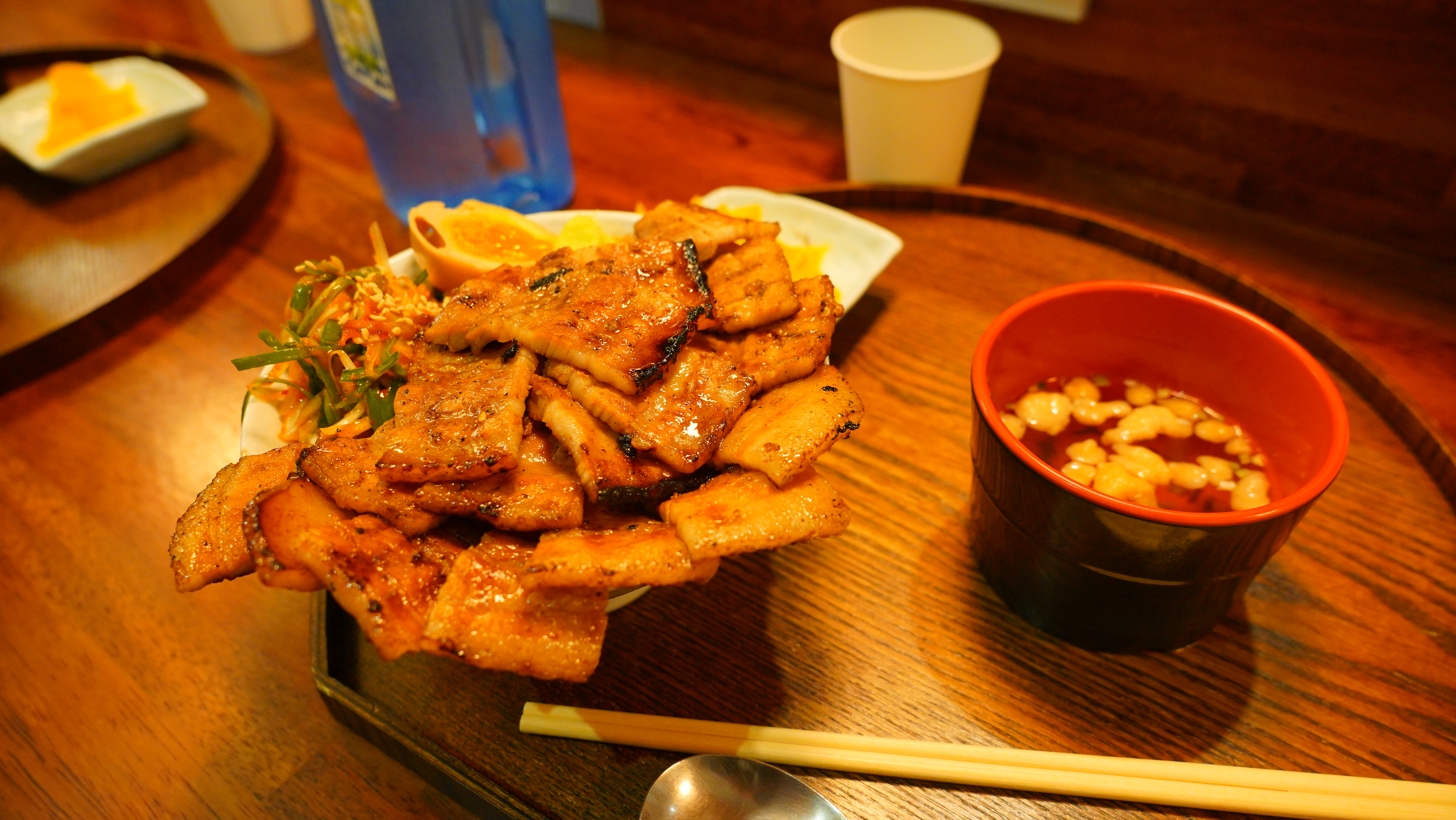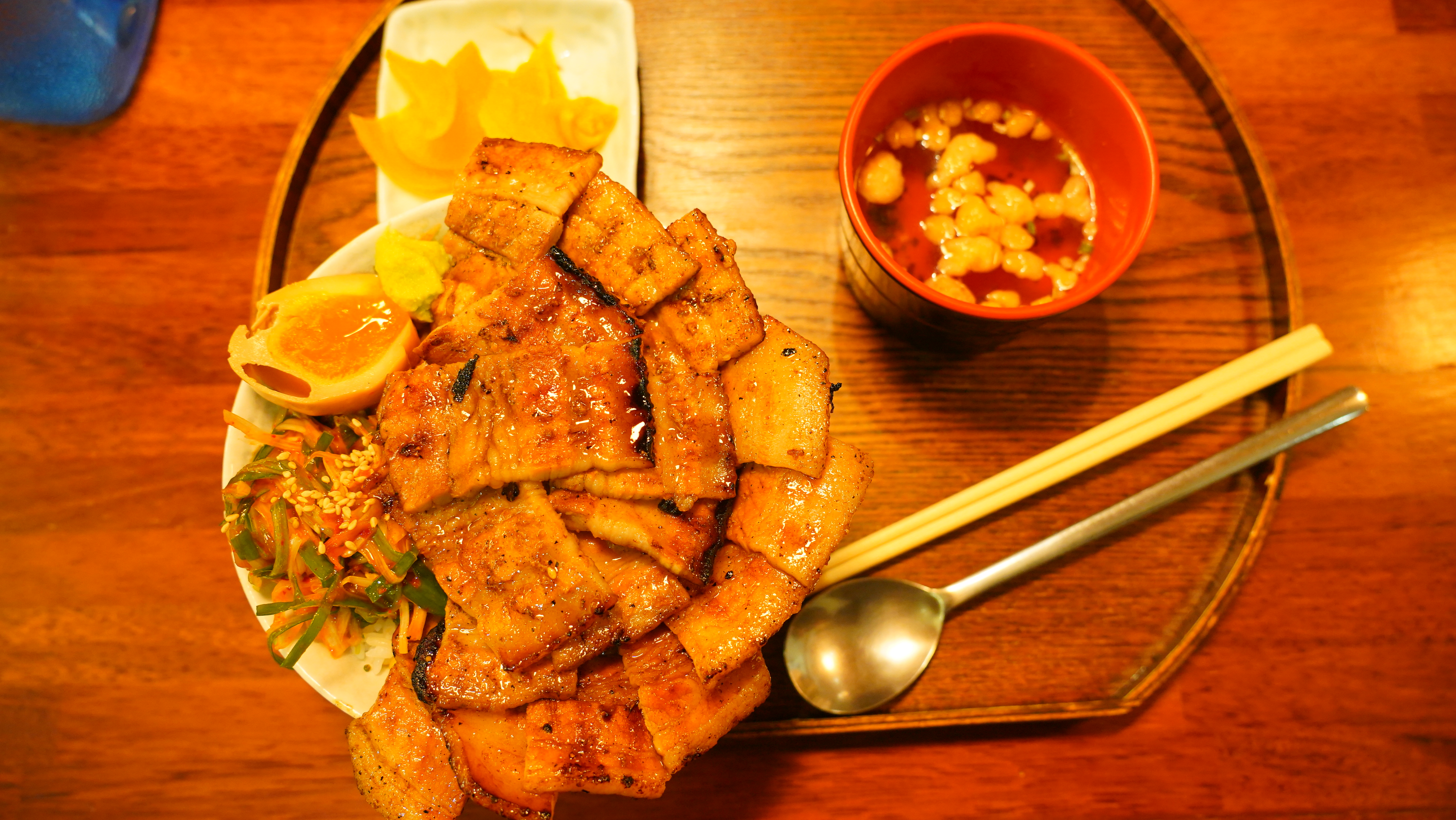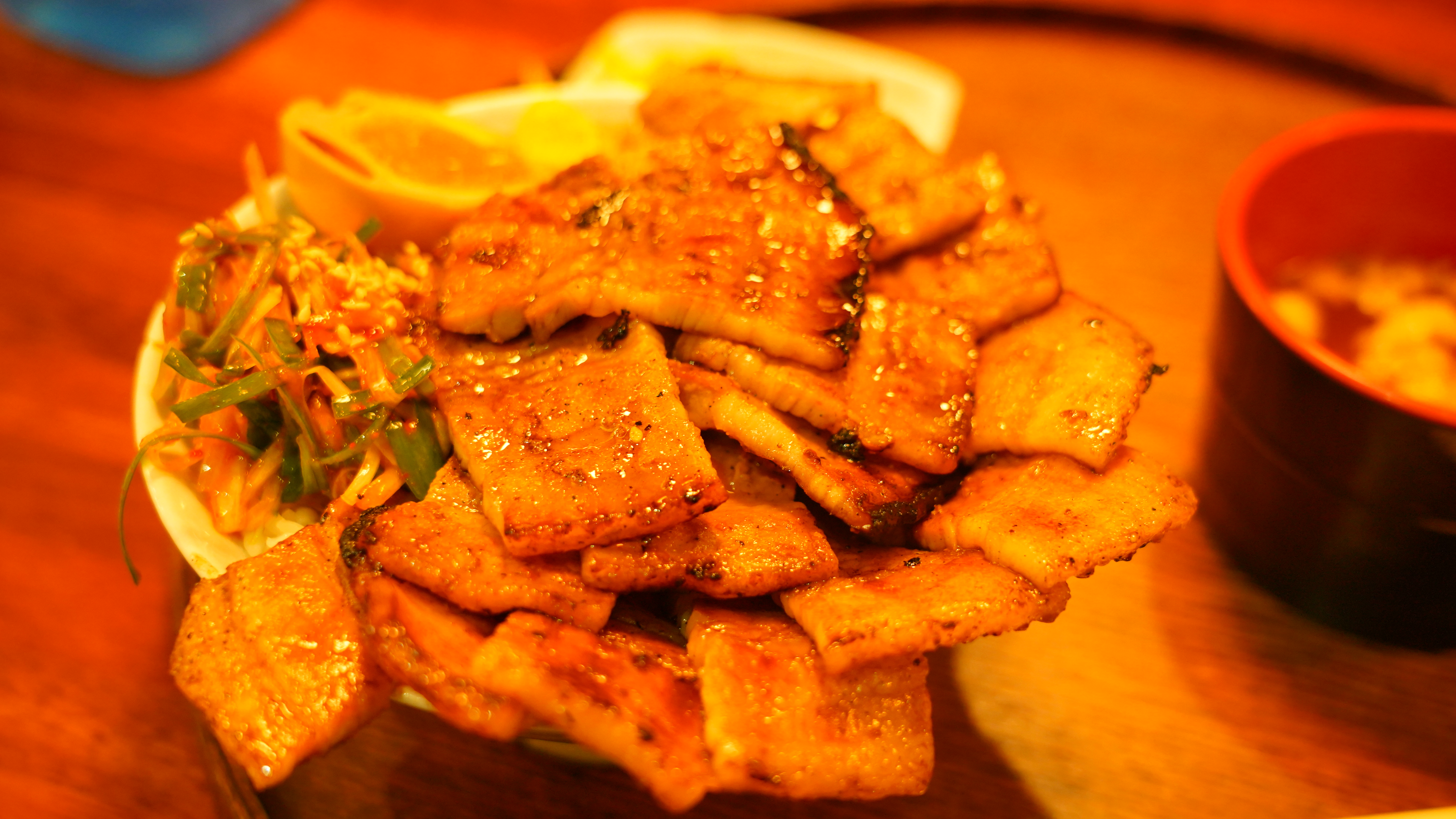 양념삼겹살을 덮밥처럼 올린 '부타동'도 유명하고, 소의 대창 요리인 '호르몬동'도 유명하다.
