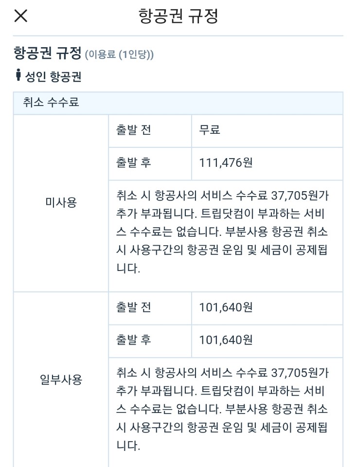 트립닷컴 자체는 수수료가 없지만 해당 항공사규정에 따라 수수료가 있을수도있고 없을수도 있다고....