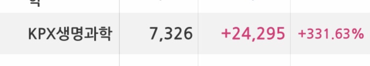 최근에 kpx 생명과학이라는 주식을 무려 331 프로나 되는 수익률로 매도를 했다