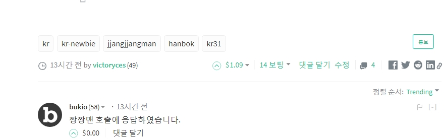 사용하라고 해 주셨어요. 짱짱맨 태그 달면 아래와 같이 보팅을 해주십니다.