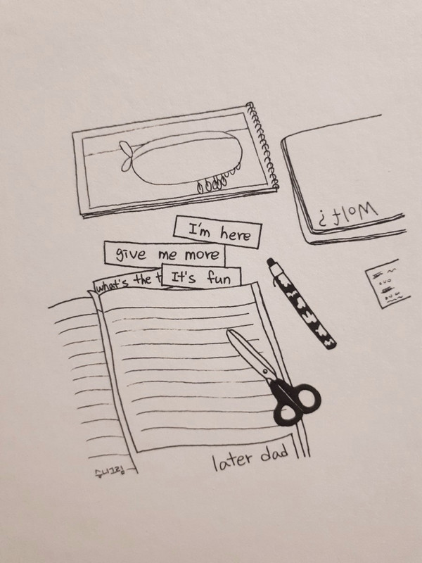 [손그림] 오전시간syuni (45)in #kr • 7 years ago 아침에 부랴부랴 어린이집 등원시켜주고, 집에 돌아와 아이 시선에 잘 보일만한 곳에 여기저기 붙여놓을 영어표현 적기 재밌다. 선생님이 된 듯한 기분^^ 아이는 어린이집, 난 오전시간의 가위질 #kr-drawing #kr-art #jjangjjangman #busy