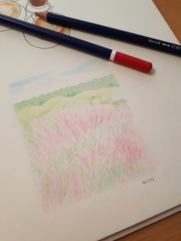 [손그림] 핑크뮬리syuni (45)in #kr • 7 years ago 저번 카페에서 어두운 조명 때문에 그리지 못한 풍경그림 집에서 다시 그려봅시답! 처음으로 풍경을 그려 봄 하늘과 초록초록한 풀을 그릴 땐 자신감만땅! (뭐 별 거 아니군 흐흐) but..어느새 흐리멍텅해진 꽃들... 핑크뮬리라는 꽃 처음 봤는데 이쁘다 계속 보고 있으니 안개 속에 있는 것만 같은 느낌적인 느낌 #kr-drawing #kr-art #jjangjjangman #busy