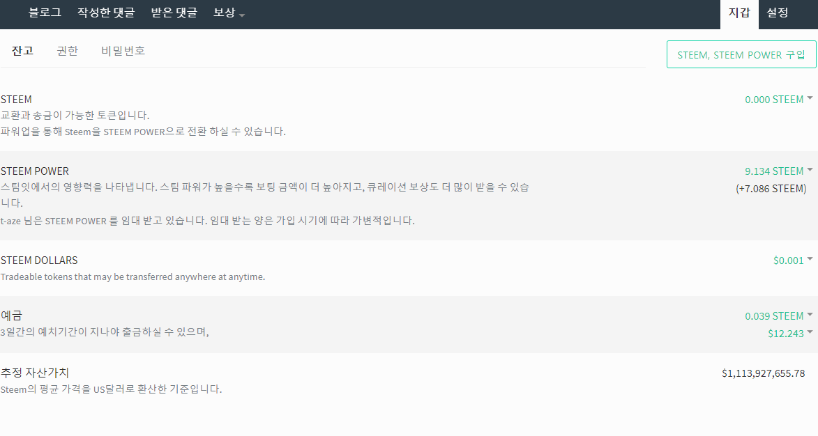 [바나] 스팀잇 오류 현재발생중. 금액이... 엌ㅋㅋㅋㅋt-aze (45)in #kr • 7 years ago (edited) 현재 스팀잇에 추정자산가치가 잘못 산출 되고 있습니다. 현재 제 계좌 보유자산이 11억 달러라고 출력이 되고있네요 엌ㅋㅋㅋ. 억소리나는군요. 설마하고 송금받은 돈이 있나 확인해 봤지만 그런돈은 없는것 같더군요. 안타깝습니다 :( ㅋㅁㅋ 그래도 상상만 해도 기분은 좋네요. 다들 계좌 금액 한번씩 확인 해보고, 기분좋은 하루 보냅시다. 그럼! 뿅! #krmaple #maple