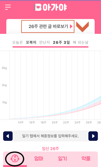 일기에 엄마 체중도 함께 적어주게 되면, 이렇게 지금 주수에 엄마 체중이 적절한지 등에 대해서