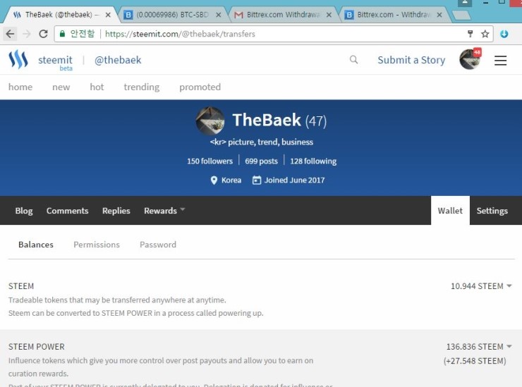 Bittrex 를 이용한 SBD 전송, 그리고 스팀파워 Up!