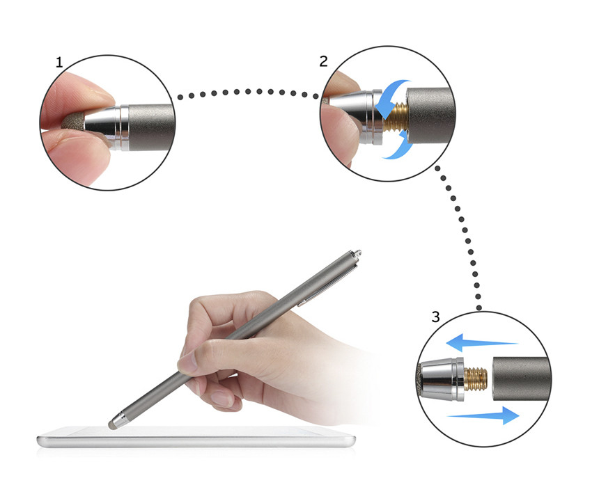 팁 부분 (정확히는 끝의 천 부분 위의 금속 부분)을 잡고 돌리면 분리가 되고 나중에 다른 팁으로 교체할 수 있습니다. (아래 사진에서처럼)