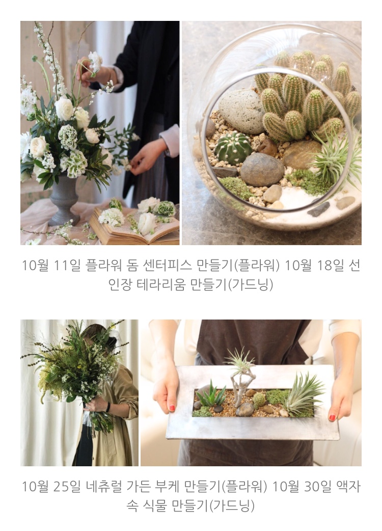 지난번 클래스에서 넘나 예쁜 다육이 테라리움 💕득템해서 이번에도 선인장 테라리움 만들고 나란히 인테리어 하고싶었는데... 일정때문에 어렵겠어요 흑흑ㅠㅠ 넘넘 아쉽지만 플라워 부케 클래스만 신청해요!!! 💐